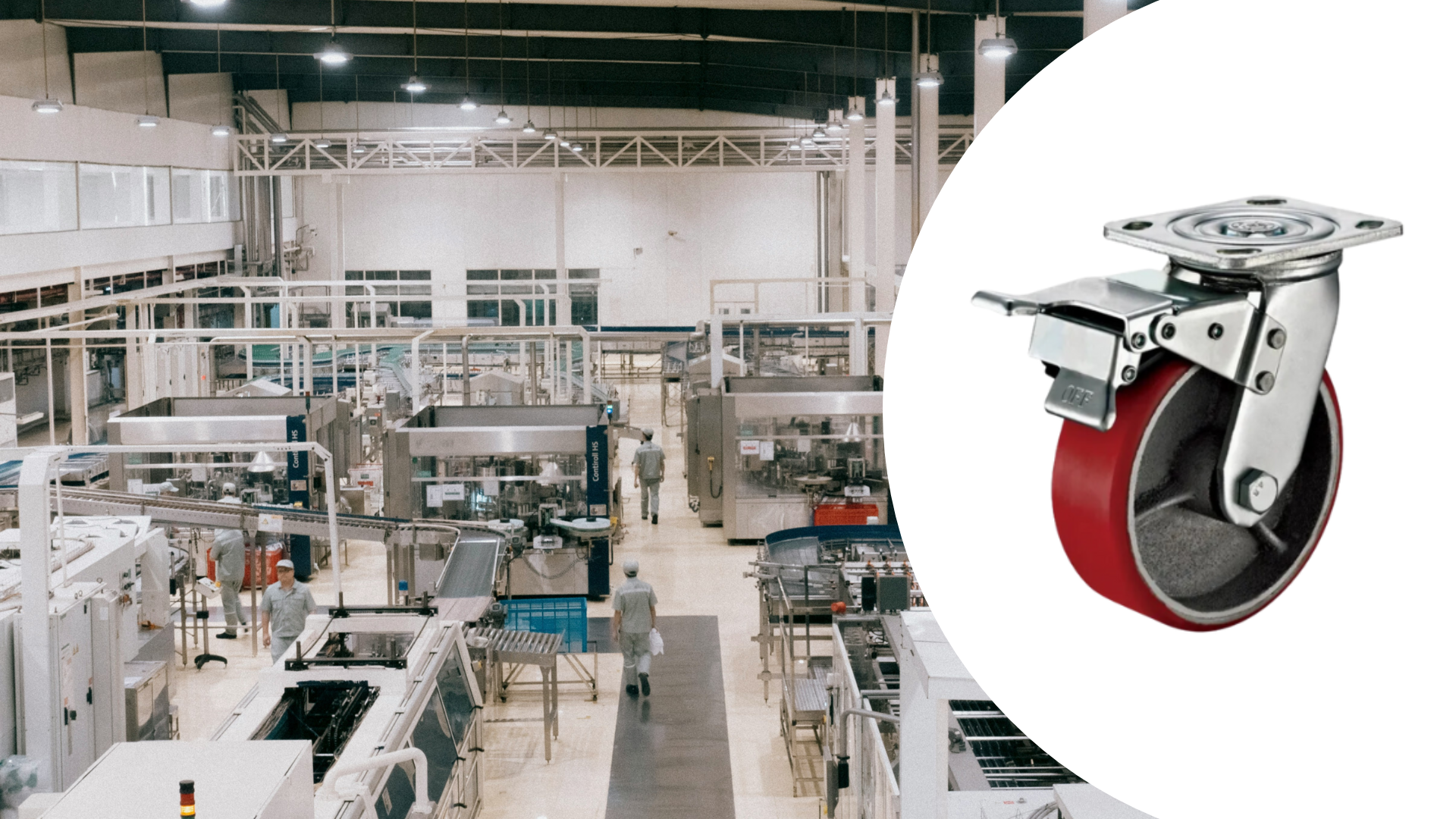 Merupakan salah satu tipe caster yang sering digunakan di berbagai industri di Indonesia. Caster ini memiliki durabilitas/daya tahan yang sangat baik. Caster ini sering digunakan di industri otomotif, textil, farmasi, dan lain sebagainya.